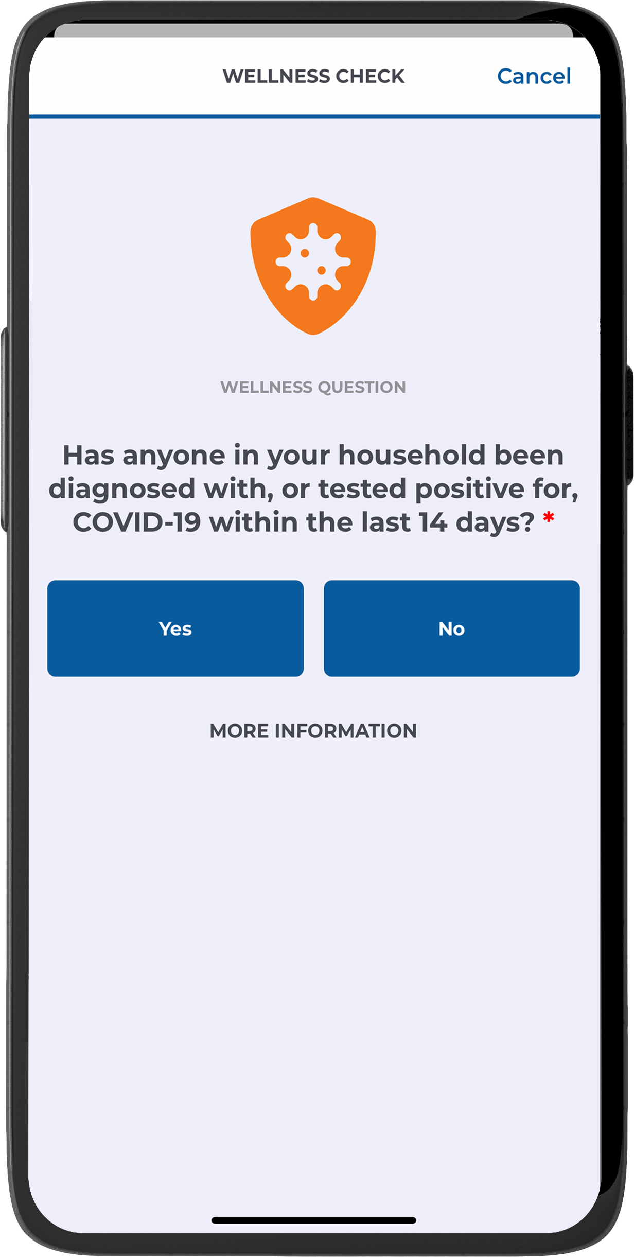 Create a daily wellness screening process with customizable questions and actions by person type. Staff, parents (for younger students), and older students complete the assessment from an easy-to-use website or app.